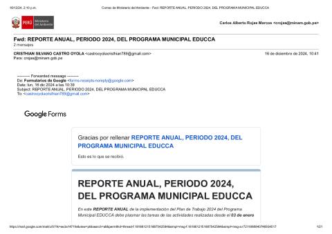 Reporte Anual 2024 del Programa Municipal EDUCCA de la Municipalidad Distrital de Caleta de Carquin, Provincia de Huaura, Región Lima