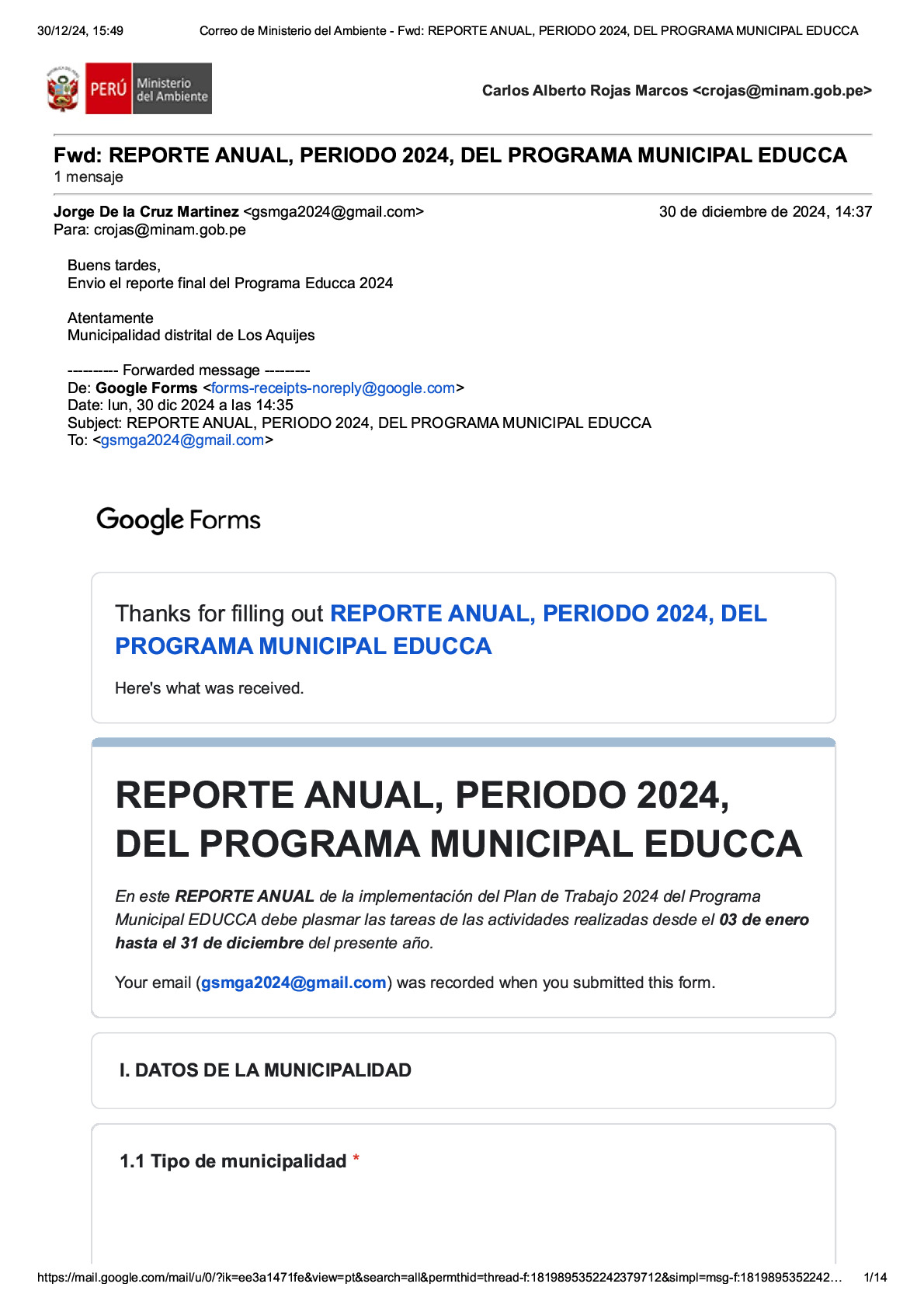 Reporte Anual 2024 del Programa Municipal EDUCCA de la Municipalidad Distrital de Los Aquijes, Provincia de Ica, Región Ica