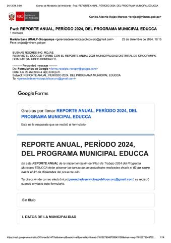 Reporte Anual 2024 del Programa Municipal EDUCCA de la Municipalidad Distrital de Orcopampa, Provincia de Castilla, Región Arequipa