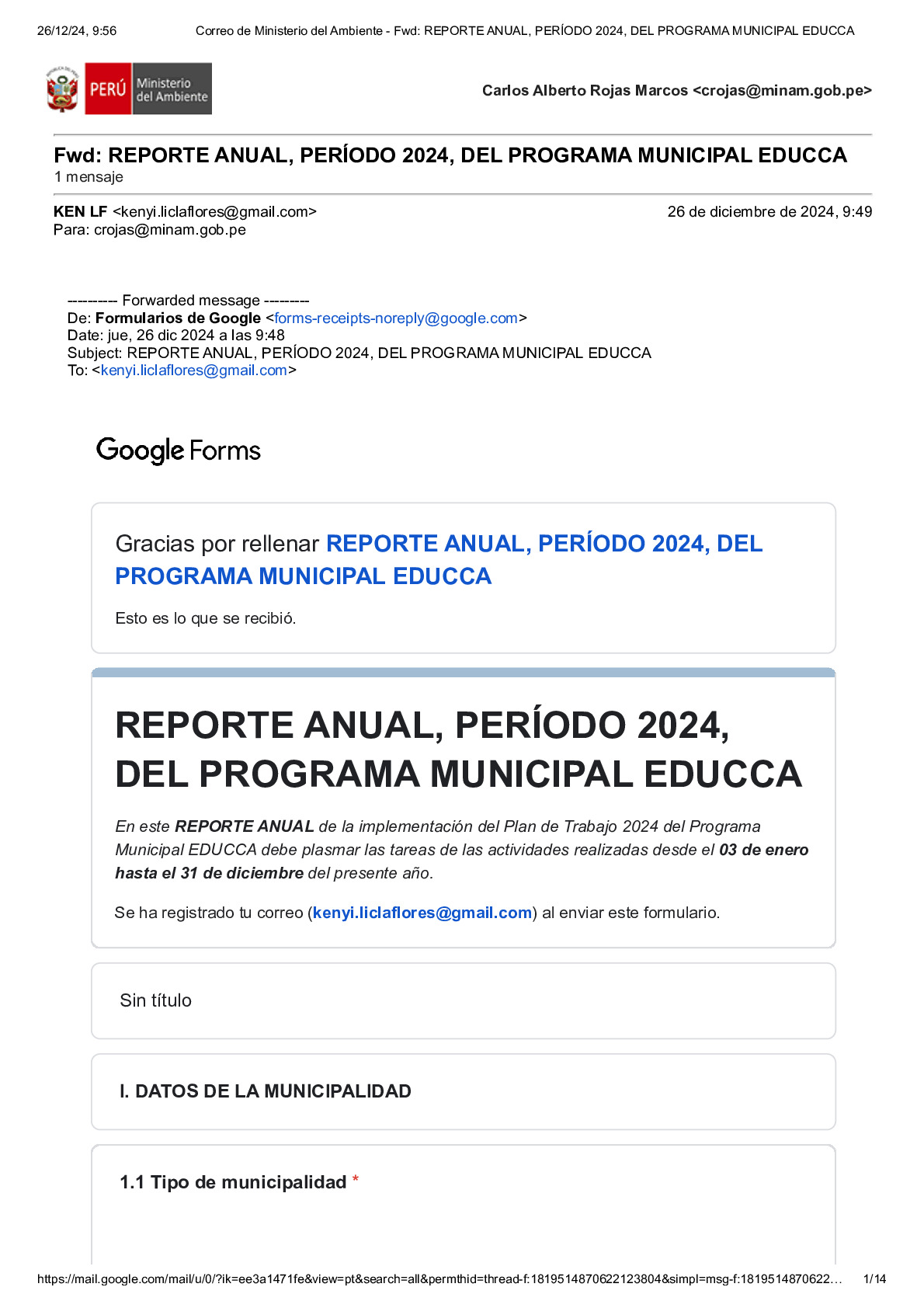 Reporte Anual 2024 del Programa Municipal EDUCCA de la Municipalidad Distrital de Ocucaje, Provincia de Ica, Región Ica
