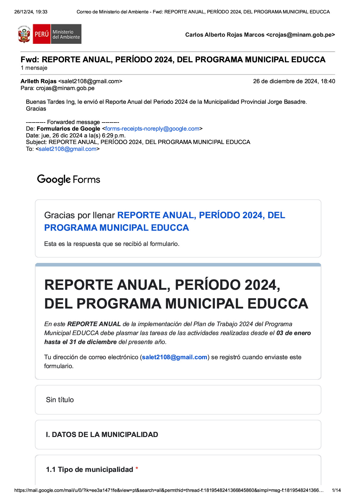 Reporte Anual 2024 del Programa Municipal EDUCCA de la Municipalidad Provincial de Jorge Basadre, Provincia de Jorge Basadre, Región Tacna