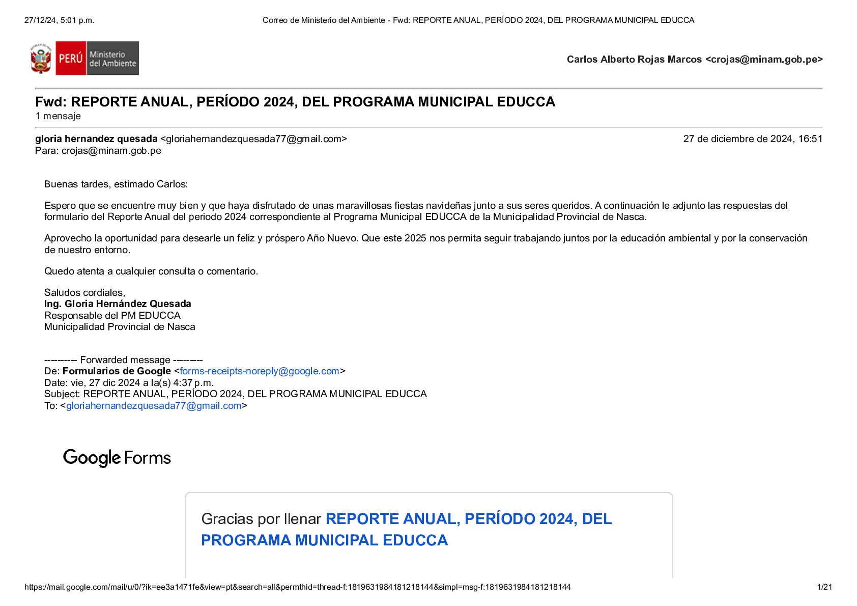 Reporte Anual 2024 del Programa Municipal EDUCCA de la Municipalidad Provincial de Nazca, Provincia de Nazca, Región Ica