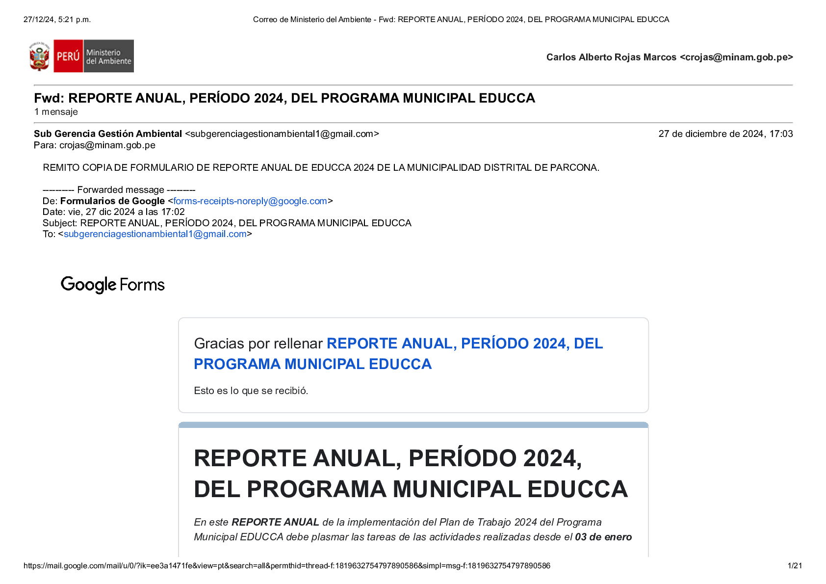 Reporte Anual 2024 del Programa Municipal EDUCCA de la Municipalidad Distrital de Parcona, Provincia de Ica, Región Ica