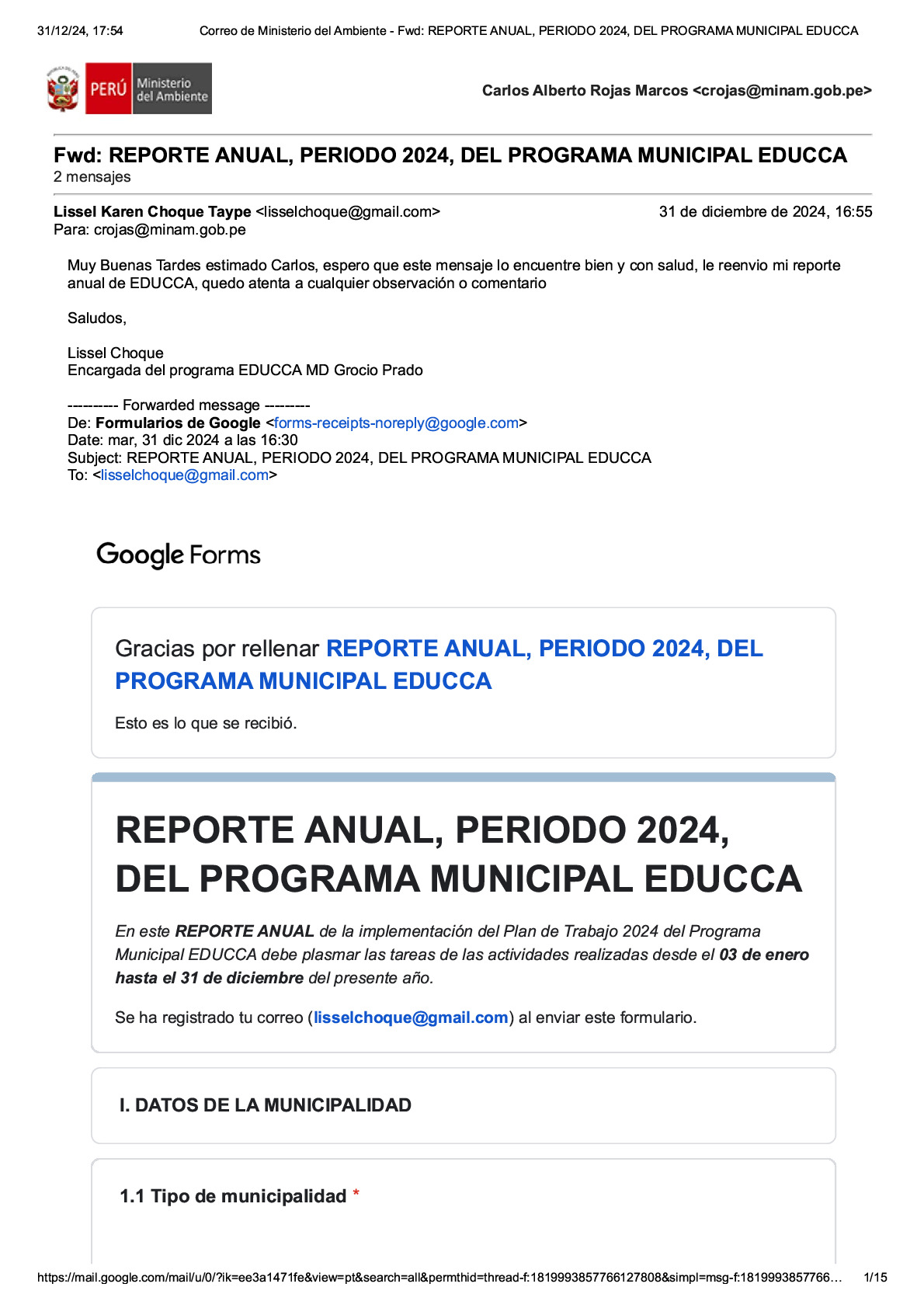 Reporte Anual 2024 del Programa Municipal EDUCCA de la Municipalidad Distrital de Grocio Prado, Provincia de Chincha, Región Ica
