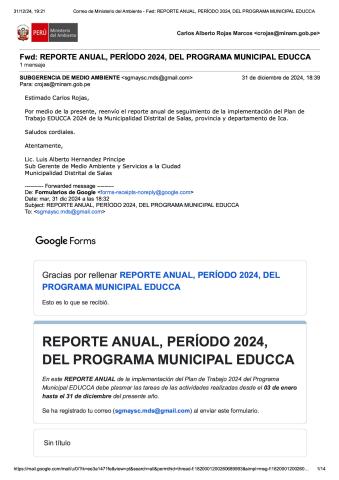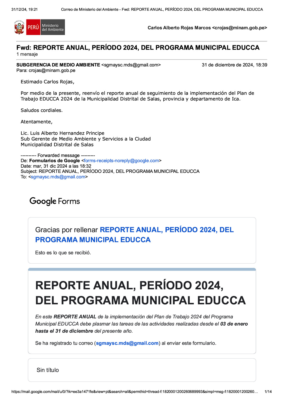 Reporte Anual 2024 del Programa Municipal EDUCCA de la Municipalidad Distrital de Salas, Provincia de Ica, Región Ica