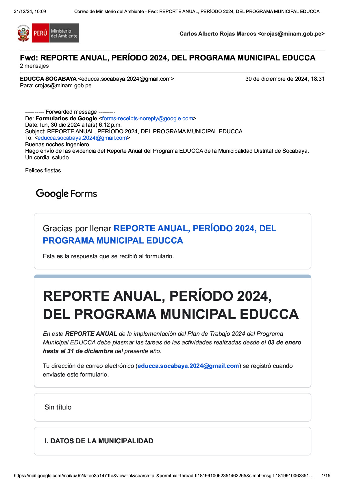 Reporte Anual 2024 del Programa Municipal EDUCCA de la Municipalidad Distrital de Socabaya, Provincia de Arequipa, Región Arequipa