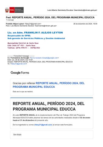 Reporte Anual 2024 del Programa Municipal EDUCCA de la Municipalidad Distrital de Santa Rosa, Provincia de Chiclayo, Región Lambayeque