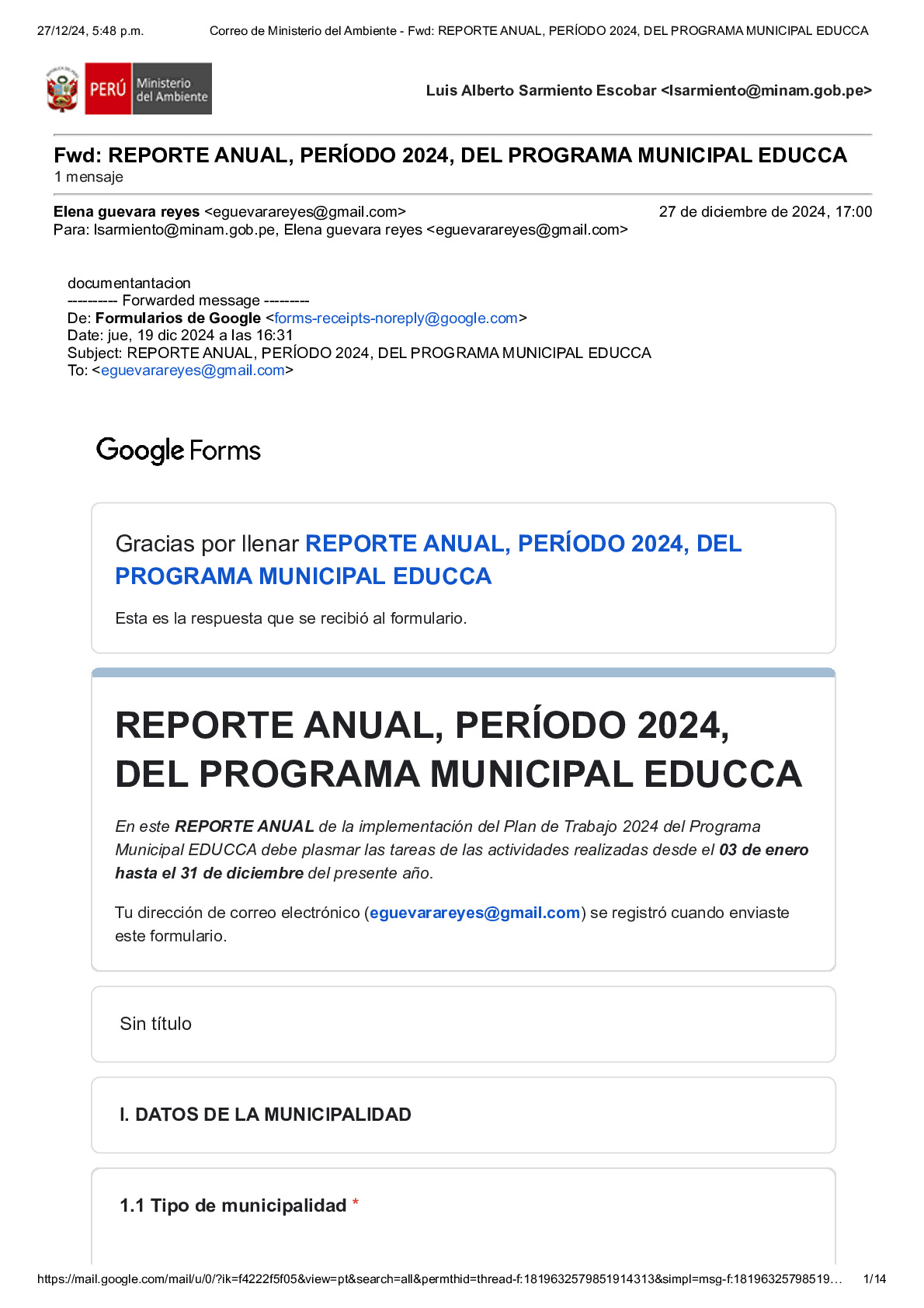 En este Reporte Anual de la implementación del Plan de Trabajo 2024 del Programa Municipal EDUCCA, se presentan las tareas y actividades realizadas durante el período del 3 de enero al 31 de diciembre de 2024. El documento ha sido elaborado por la Municipalidad Distrital de Chontalí, provincia de Jaén, región Cajamarca, como parte de sus acciones en el marco del Programa Municipal EDUCCA.
