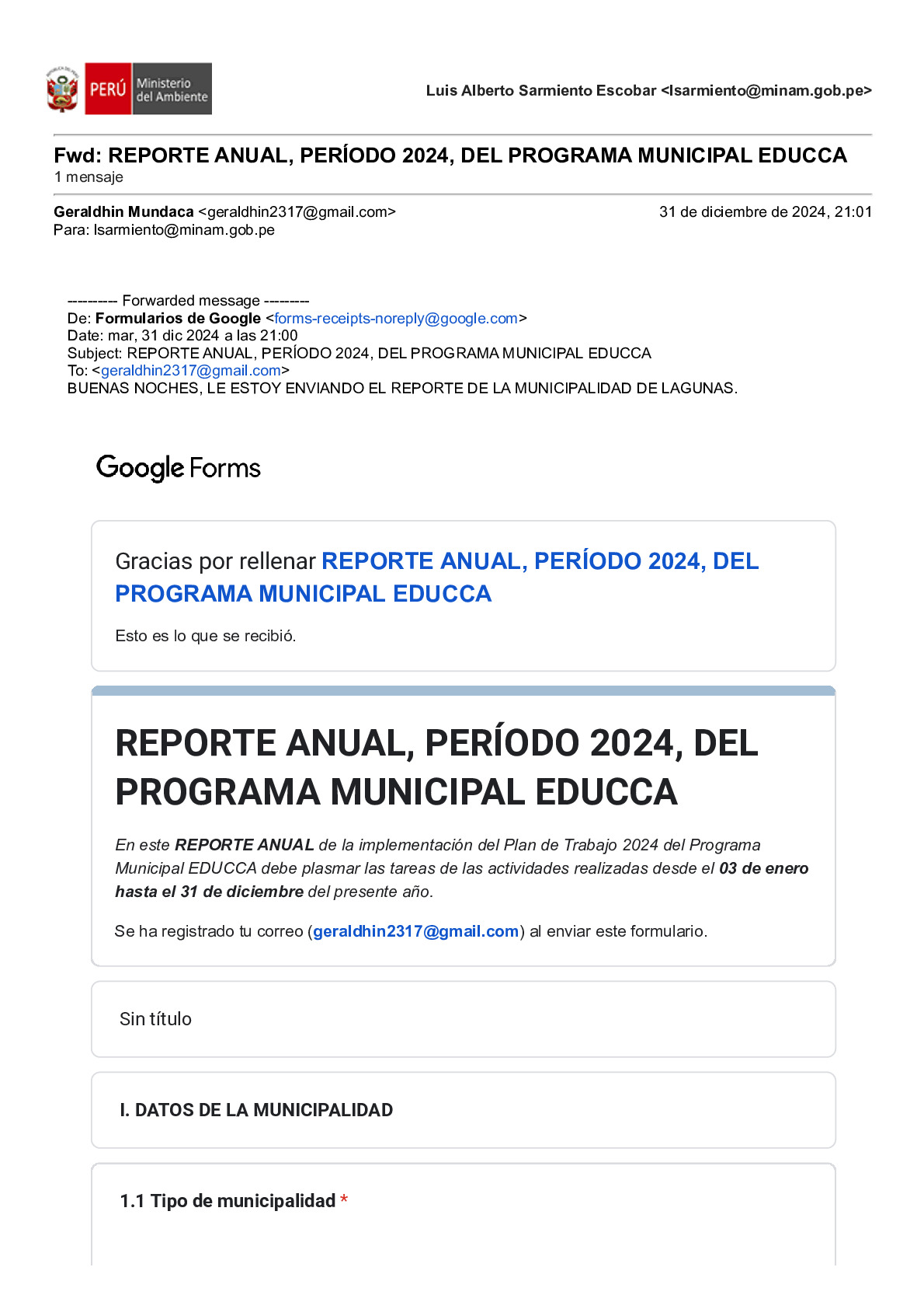 Reporte Anual 2024 del Programa Municipal EDUCCA de la Municipalidad Distrital de Lagunas, Provincia de Chiclayo, Región Lambayeque