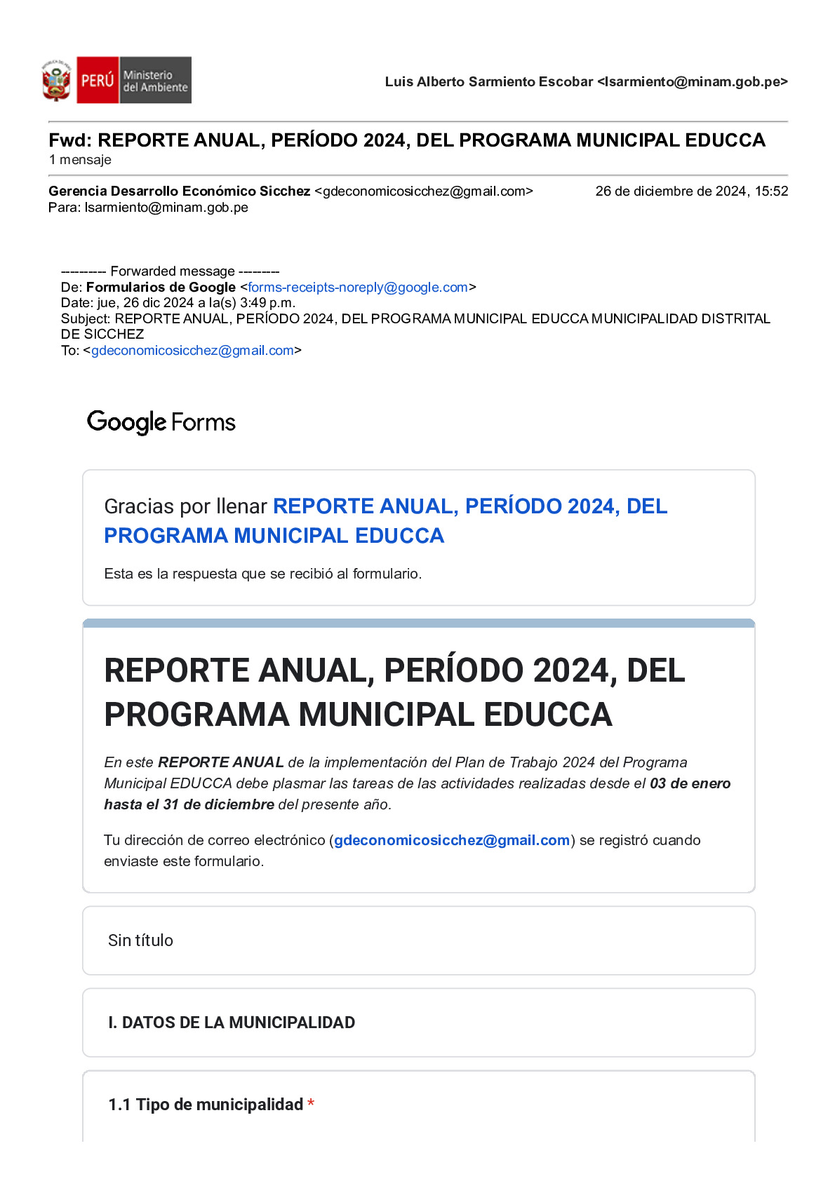 En este Reporte Anual de la implementación del Plan de Trabajo 2024 del Programa Municipal EDUCCA, se presentan las tareas y actividades realizadas durante el período del 3 de enero al 31 de diciembre de 2024. El documento ha sido elaborado por la Municipalidad Distrital de Sicchez, provincia de Ayabaca, región Piura, como parte de sus acciones en el marco del Programa Municipal EDUCCA.