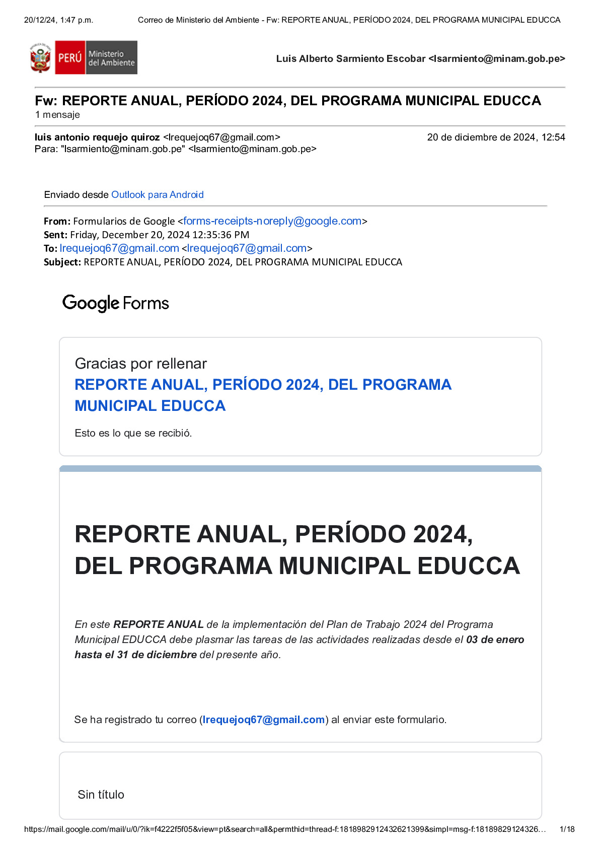 En este Reporte Anual de la implementación del Plan de Trabajo 2024 del Programa Municipal EDUCCA, se presentan las tareas y actividades realizadas durante el período del 3 de enero al 31 de diciembre de 2024. El documento ha sido elaborado por la Municipalidad Distrital de Tumán, provincia de Chiclayo, región Lambayeque, como parte de sus acciones en el marco del Programa Municipal EDUCCA.