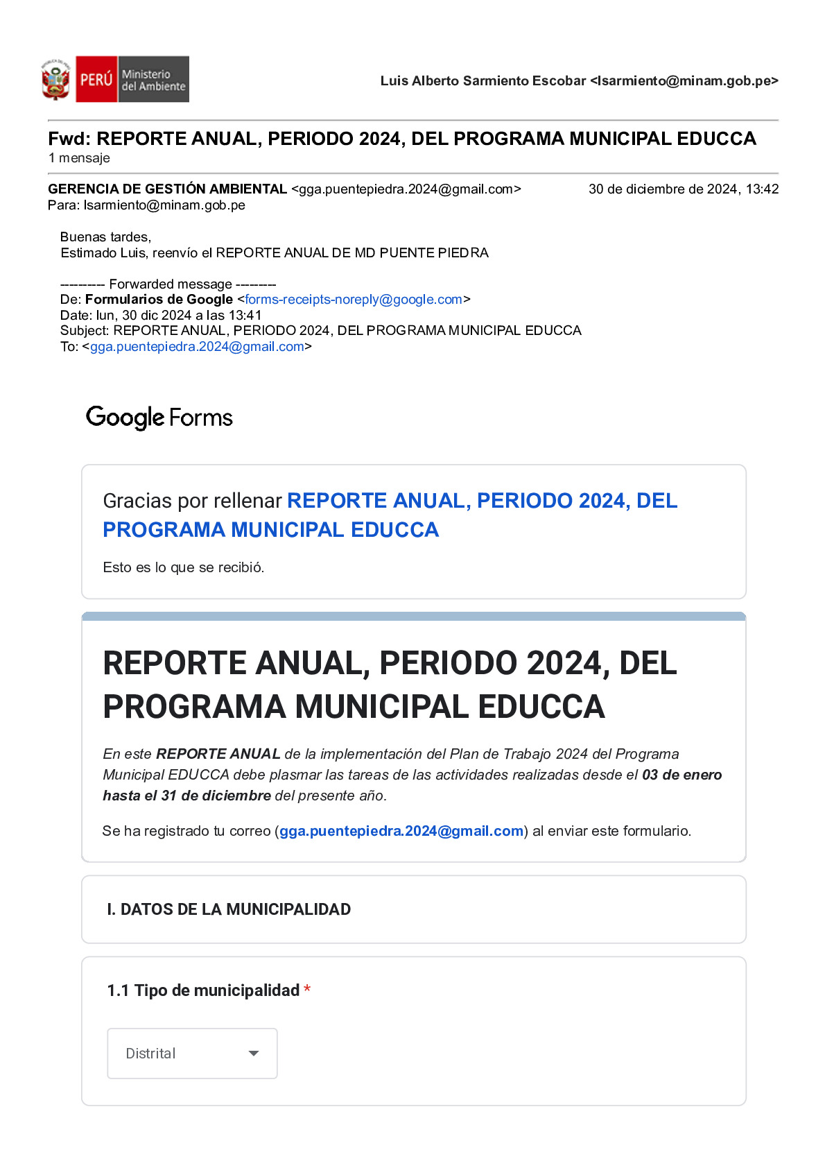 Reporte Anual 2024 del Programa Municipal EDUCCA de la Municipalidad Distrital de Puente Piedra, Provincia de Lima, Región Lima Metropolitana