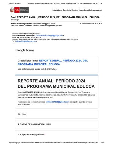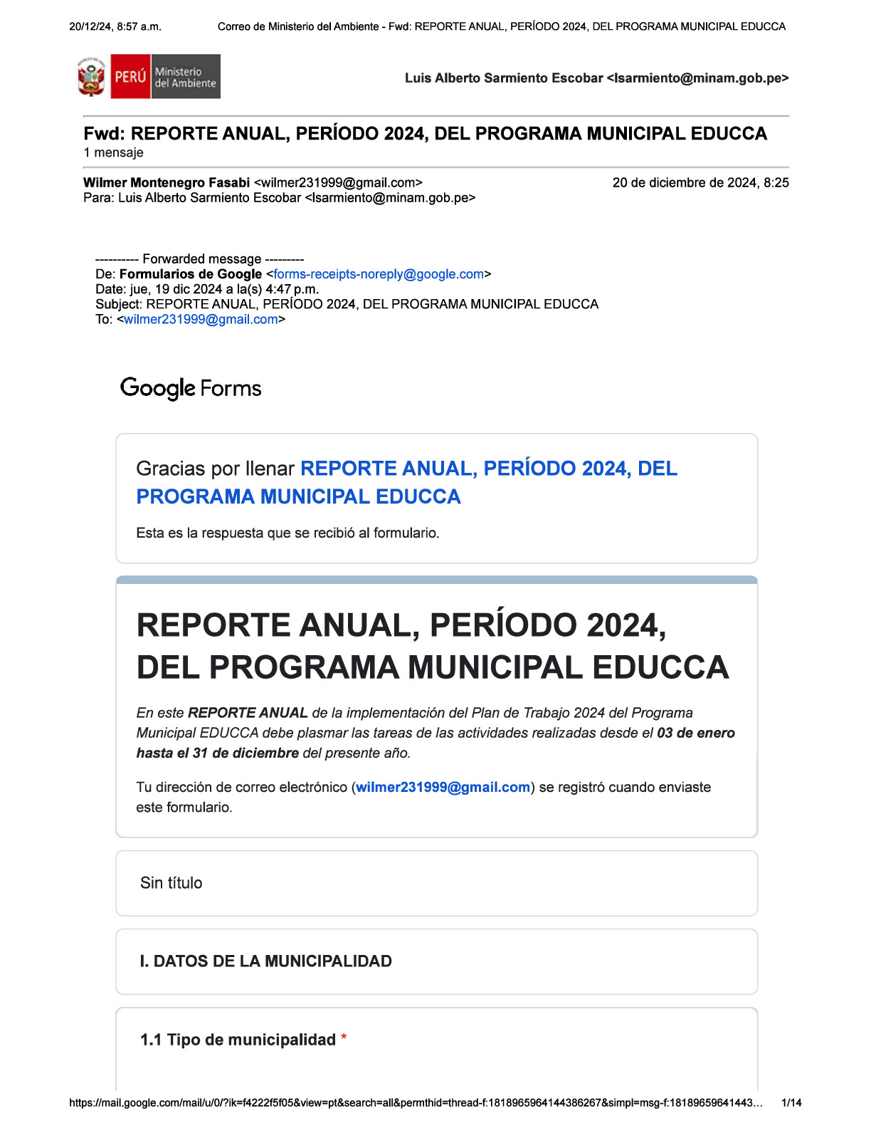 En este Reporte Anual de la implementación del Plan de Trabajo 2024 del Programa Municipal EDUCCA, se presentan las tareas y actividades realizadas durante el período del 3 de enero al 31 de diciembre de 2024. El documento ha sido elaborado por la Municipalidad Distrital de Campanilla, provincia de Mariscal Cáceres, región San Martín, como parte de sus acciones en el marco del Programa Municipal EDUCCA.