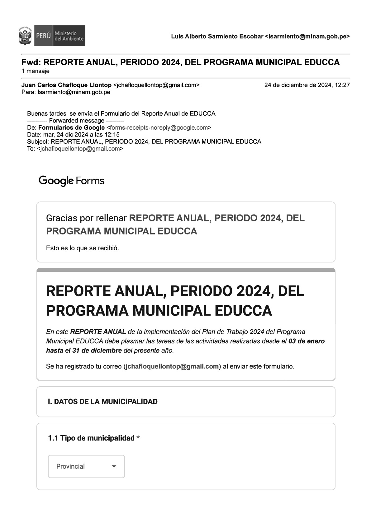 Reporte Anual 2024 del Programa Municipal EDUCCA de la Municipalidad Provincial de Chiclayo, Provincia de Chiclayo, Región Lambayeque
