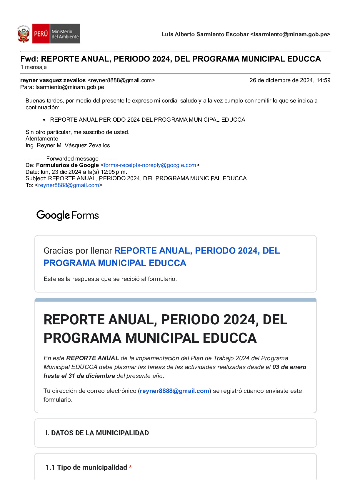 En este Reporte Anual de la implementación del Plan de Trabajo 2024 del Programa Municipal EDUCCA, se presentan las tareas y actividades realizadas durante el período del 3 de enero al 31 de diciembre de 2024. El documento ha sido elaborado por la Municipalidad Distrital de José Leonardo Ortiz, provincia de Chiclayo, región Lambayeque, como parte de sus acciones en el marco del Programa Municipal EDUCCA.