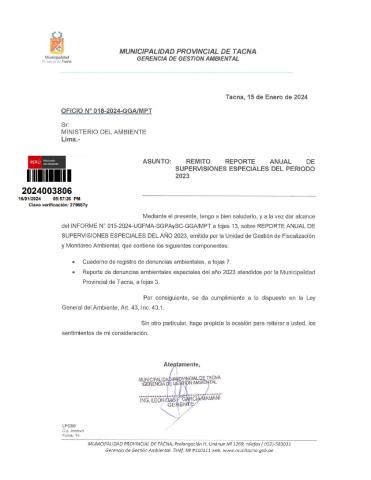 Reporte anual de supervisiones especiales 2023 Municipalidad Provincial de Tacna