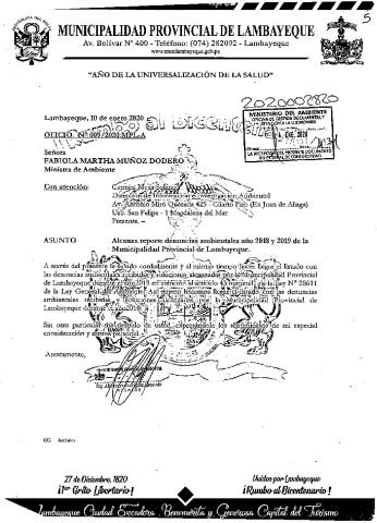 Reporte denuncias ambientales año 2018 y 2019 de la Municipalidad Provincial de Lambayeque.