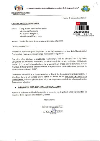 Reporte de denuncias ambientales año 2020 de la Municipalidad Provincial de Nasca