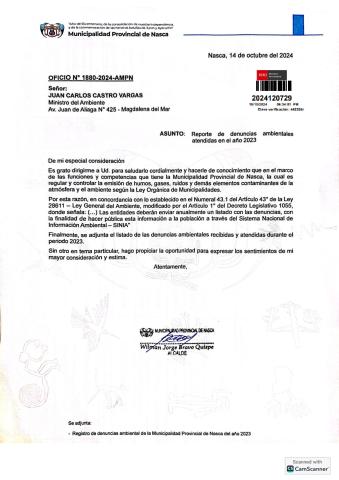 Reporte de denuncias ambientales presentados en la municipalidad provincial de Nasca 2023