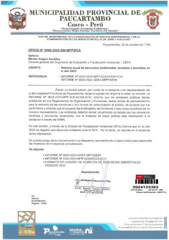 Reporte de denuncias ambientales presentados en la municipalidad provincial de Paucartambo en el 2023