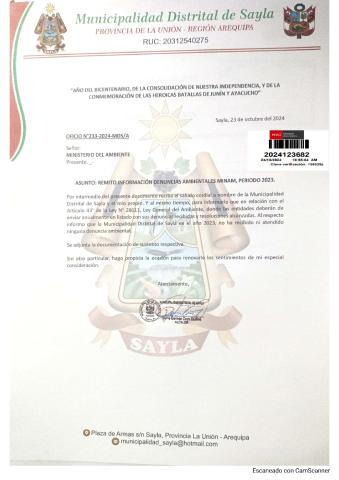 Reporte de denuncias ambientales presentados en la municipalidad distrital de Sayla 2023