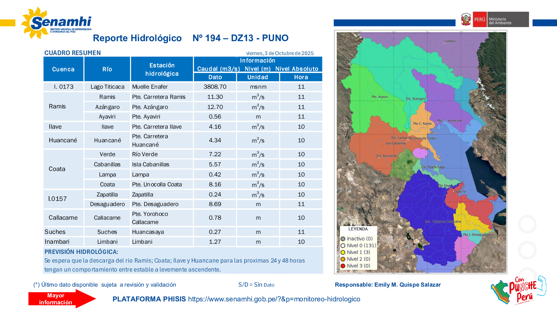 Reporte Hidrológico Nº 194 – DZ13 - PUNO