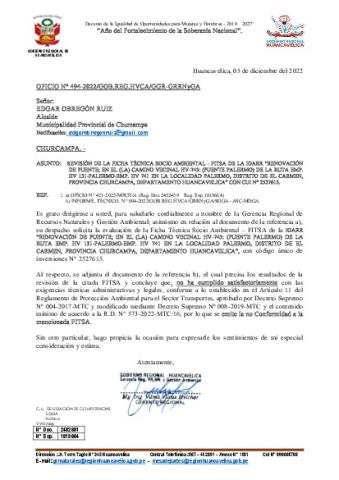 REVISIÓN DE LA FICHA TÉCNICA SOCIO AMBIENTAL - FITSA DE LA IOARR “RENOVACIÓN DE PUENTE; EN EL (LA) CAMINO VECINAL HV-743: (PUENTE PALERMO) DE LA RUTA EMP. HV 131-PALERMO-EMP. HV 741 EN LA LOCALIDAD PALERMO, DISTRITO DE EL CARMEN, PROVINCIA CHURCAMPA, DEPARTAMENTO HUANCAVELICA” CON CUI N° 2527615.