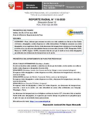 SENAMHI-DZ13 Puno: Reporte radial de 24 de mayo del 2020