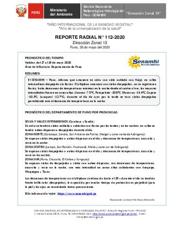 SENAMHI-DZ13 Puno: Reporte radial de 26 de mayo del 2020