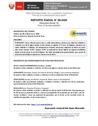 SENAMHI-DZ13 Puno: Reporte radial de 27 de marzo del 2020