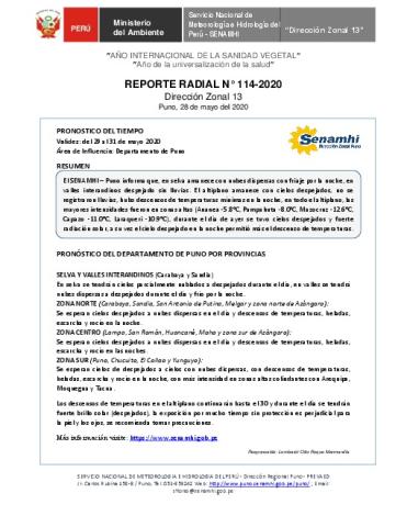 SENAMHI-DZ13 Puno: Reporte radial de 28 de mayo del 2020