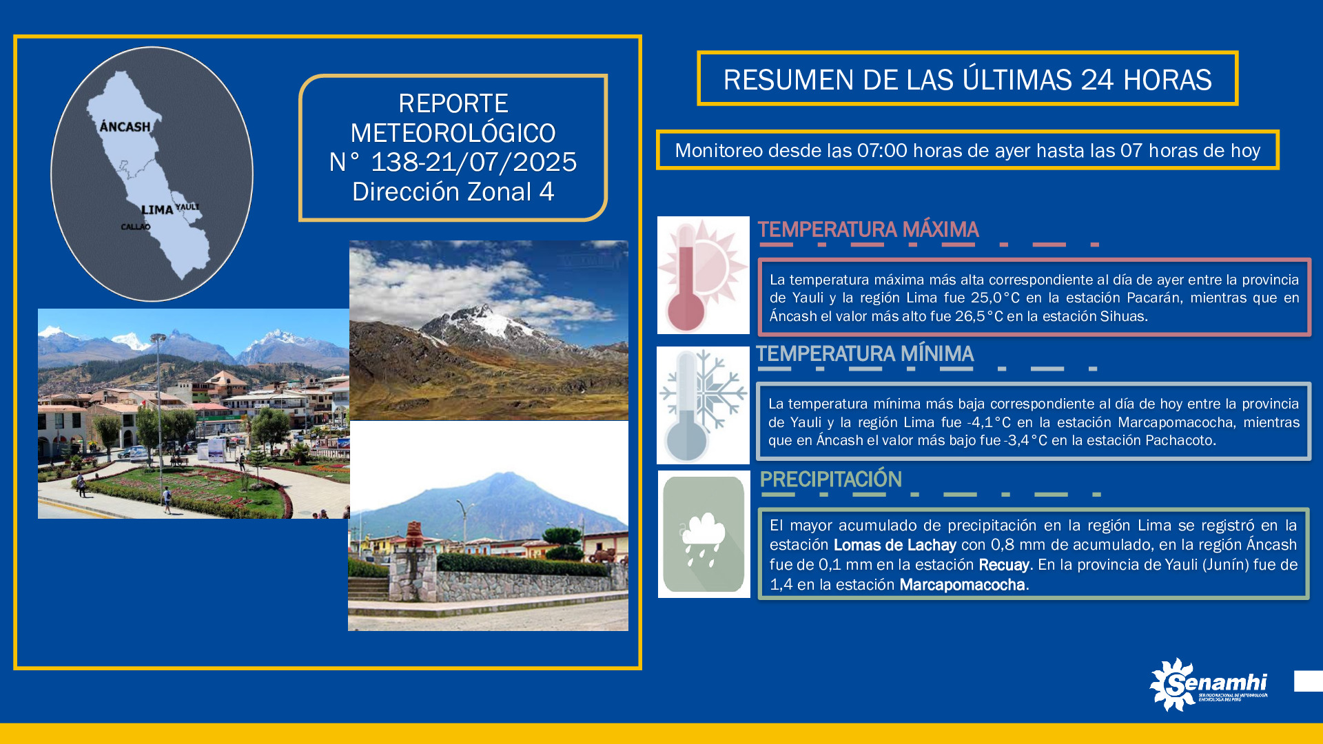 REPORTE METEOROLÓGICO N° 138-21/07/2025Dirección Zonal 4