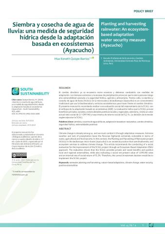 Siembra y cosecha de agua de lluvia: una medida de seguridad hídrica desde la adaptación basada en ecosistemas (Ayacucho)