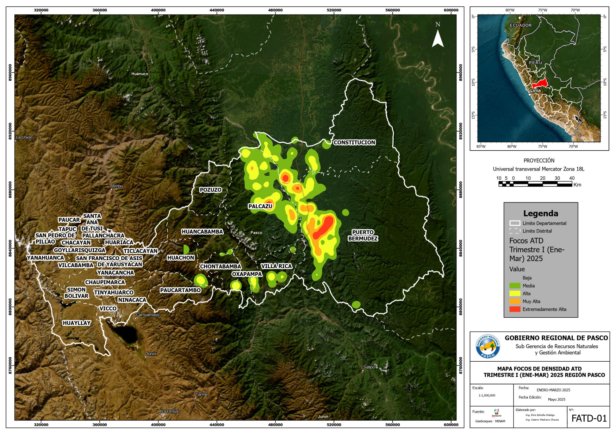 Focos de Densidad ATD Trimestre I (Ene-Mar) de la Región de Pasco del año 2025.