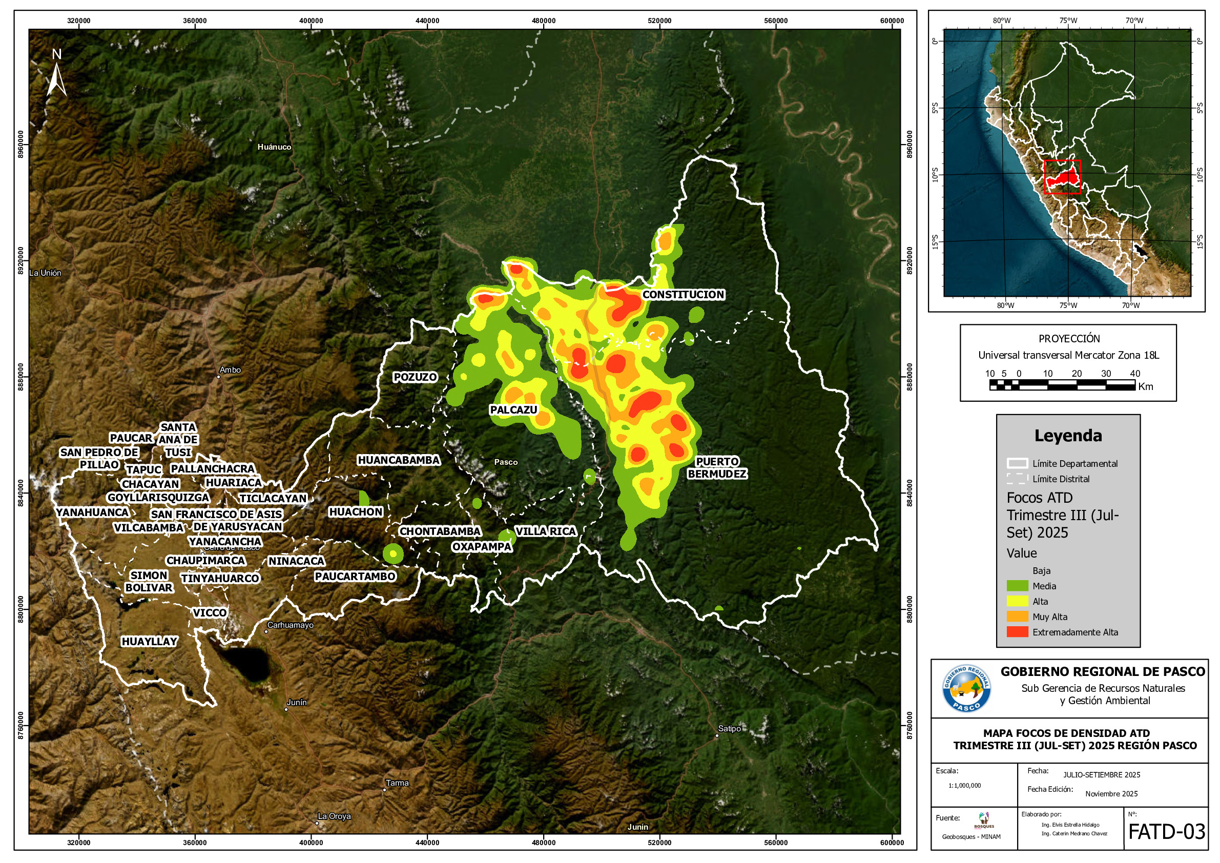 Mapa Focos de Densidad ATD Trimestre III (Jul-Set) 2025 Región Pasco