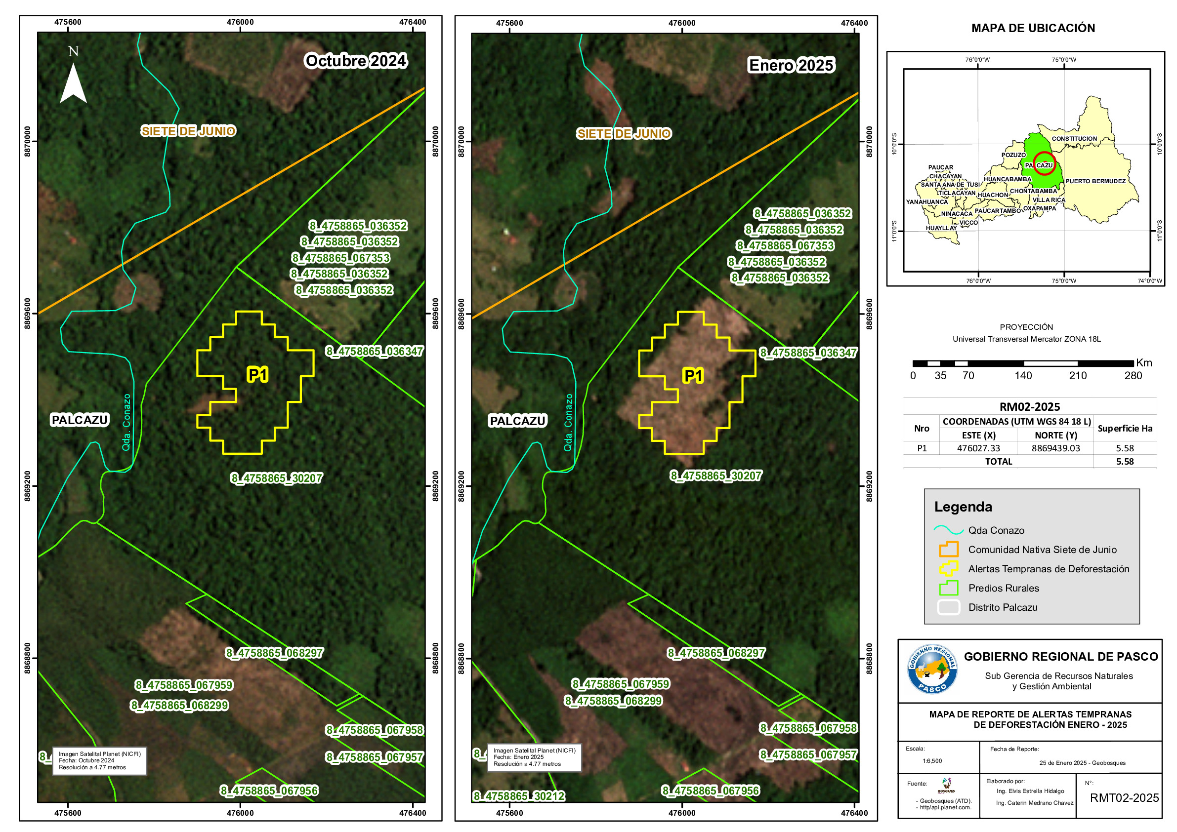 Mapa de Reporte de Alertas Tempranas de Deforestación Enero - 2025