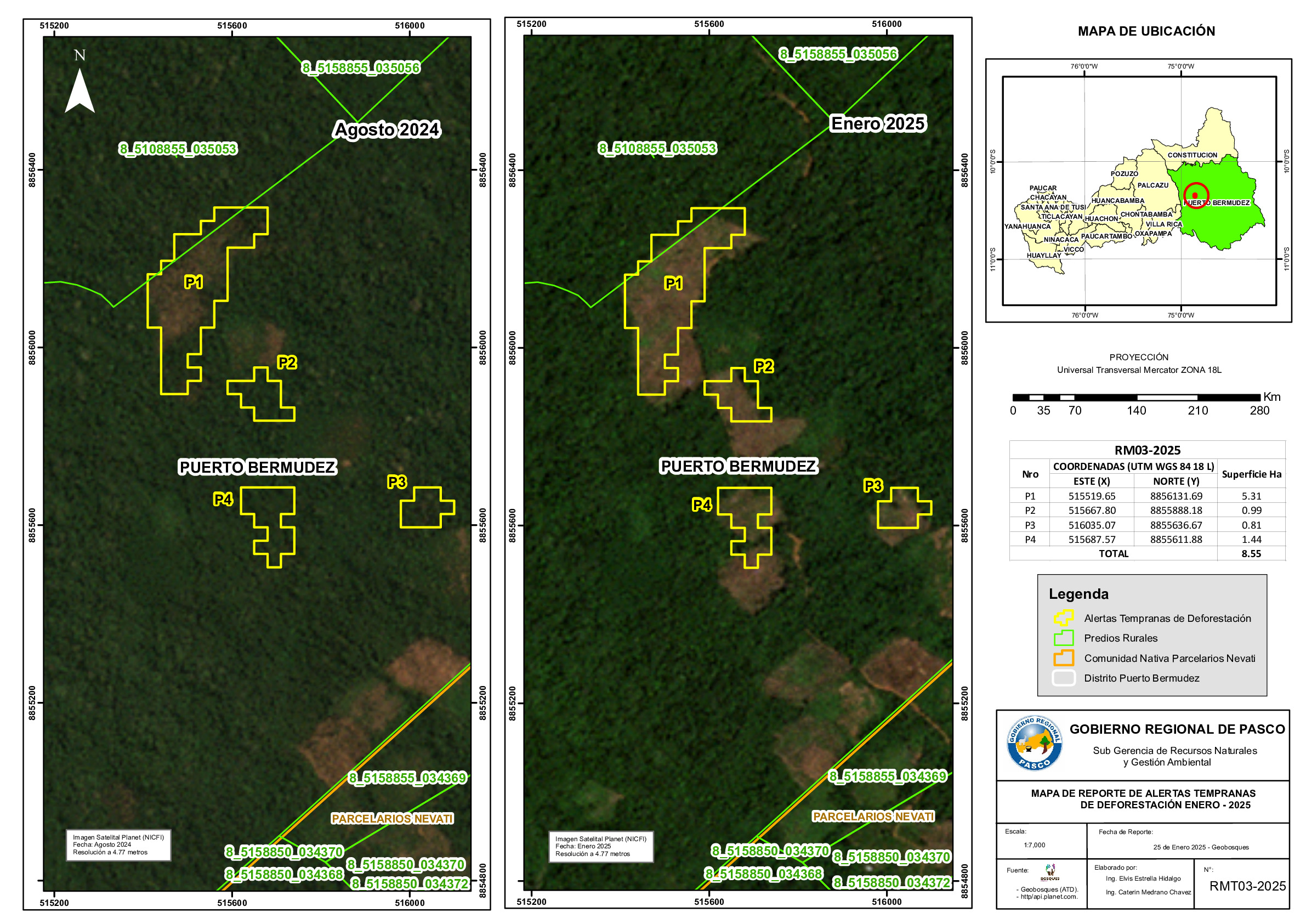 Mapa de Reporte de Alertas Tempranas de Deforestación Enero – 2025