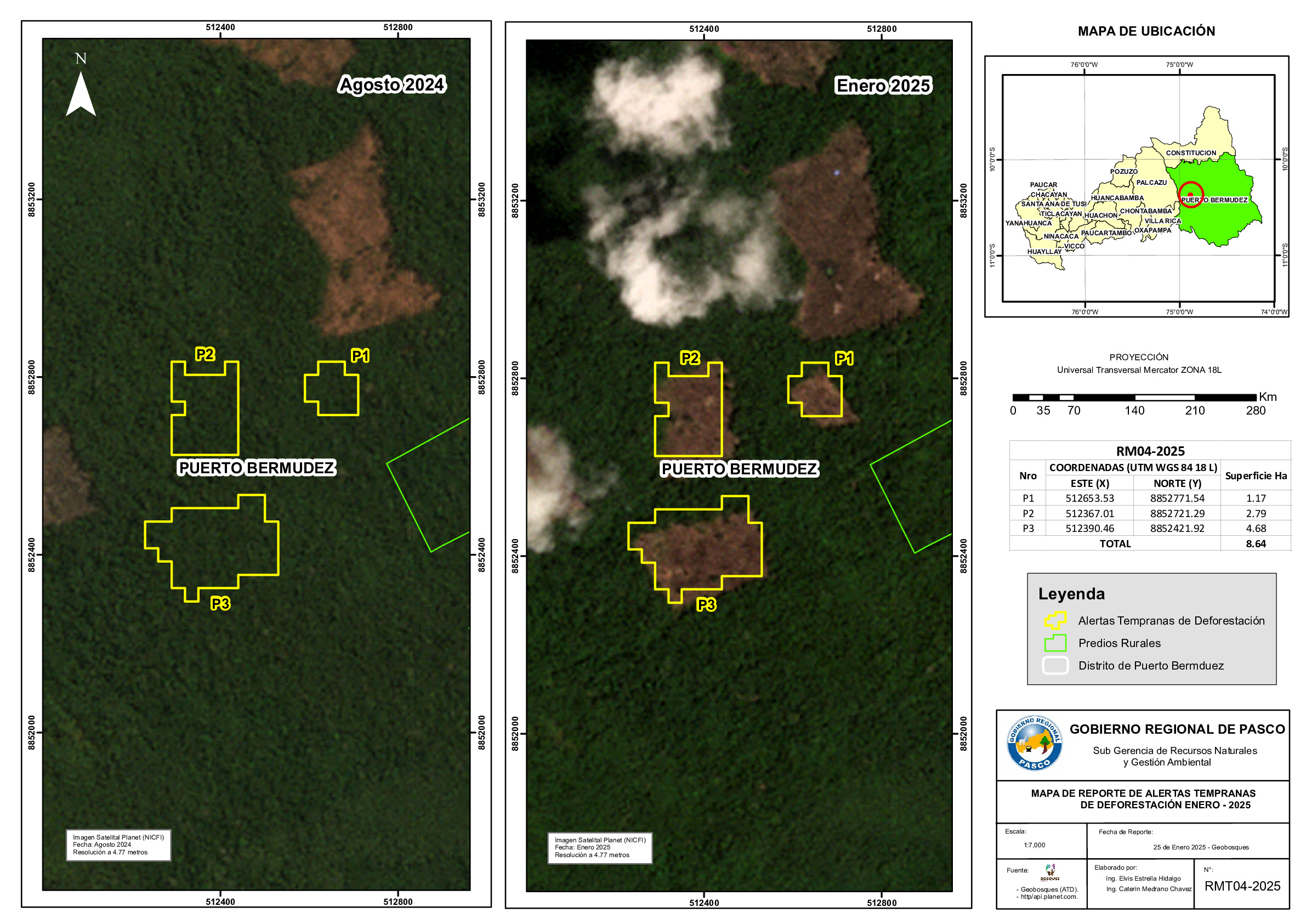 Mapa de Reporte de Alertas Tempranas de Deforestación Enero - 2025