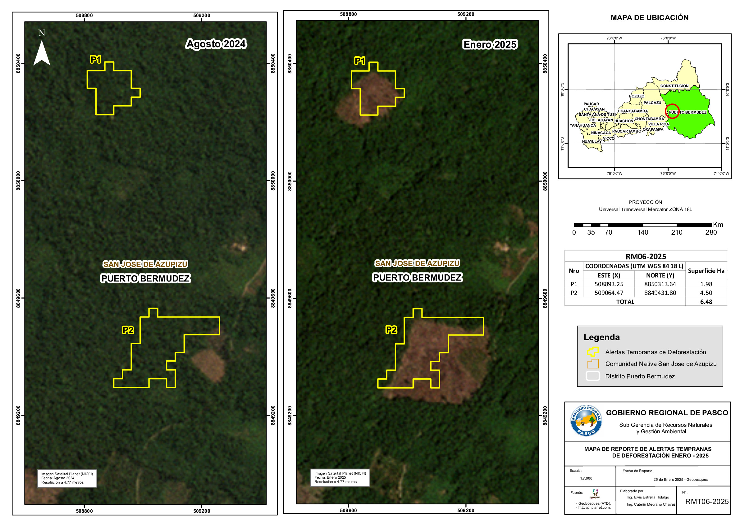 Mapa de Reporte de Alertas Tempranas de Deforestación Enero - 2025