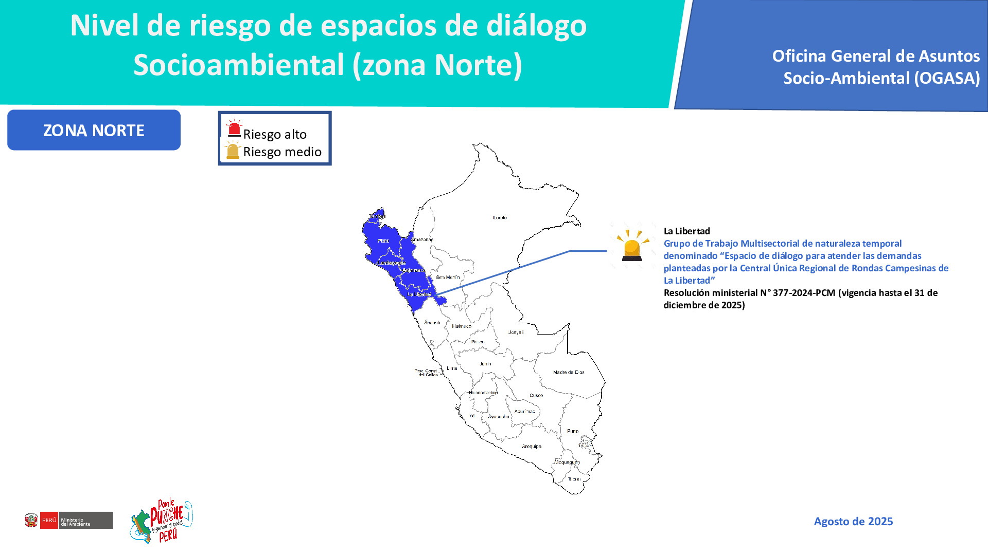 La Oficina General de Asuntos Socio-Ambientales (OGASA) publicó un mapa actualizado que evalúa los niveles de riesgo en espacios de diálogo socioambiental a nivel nacional. El informe identifica un caso de riesgo.