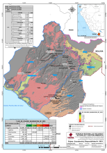 El desierto costero, matorral andino, pajonal de puna seca tiene un nivel de riesgo de MUY ALTO con 320..982,2.,.3776 Ha de superficie, correspondiente a los distritos de Pachia, Pocollay hacia Palca y la parte alta de Sama, Ilabaya, Locumba y parte de Ite, Estique Pampa y Héroes de Albarracín; con nivel ALTO el matorral andino con 929..019,9,.0349 Ha ubicado en las zonas altas de la región en el distrito de Candarave, Cairani, Huanuara, Camilaca, Quilahuani, Curibaya, Tarata, Ticaco, Chucatamani, Héroes de Albarracín, Sitajara, Susapaya, Palca, Ite, Locumba e Ilabaya que presentan condiciones físicas, geomorfológicas adecuadas para peligros de remoción de masa (huaycos, caída de roca, reptamiento, flujo de tierra y rocas). En la proyección del año 2050,0,. los ecosistemas con nivel riesgo aumenta porcentualmente en nivel ALTO en 9%, disminuye en nivel MUY ALTO 4%, y el área no con nivel NO CLASIFICA disminuye en 2%.