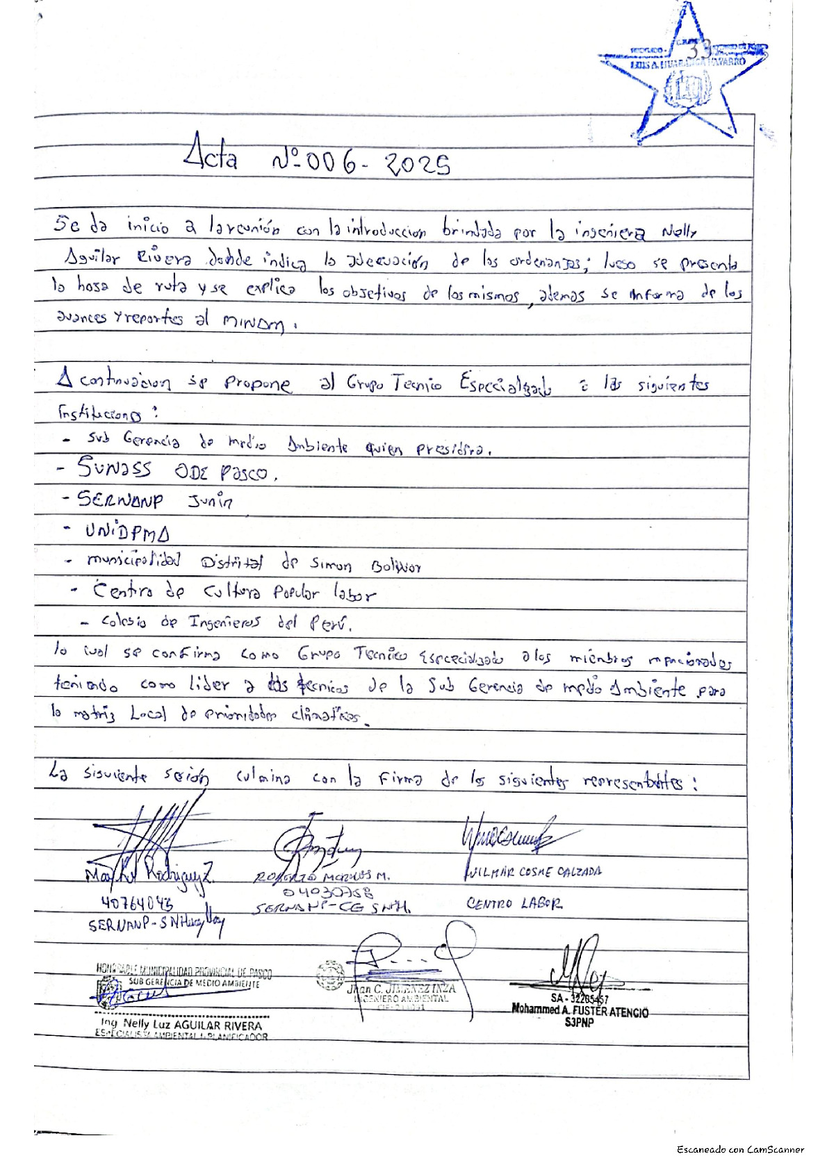 Acta de sesión ordinaria, de la Comisión Ambiental Municipal de la PROVINCIA DE PASCO-2025
