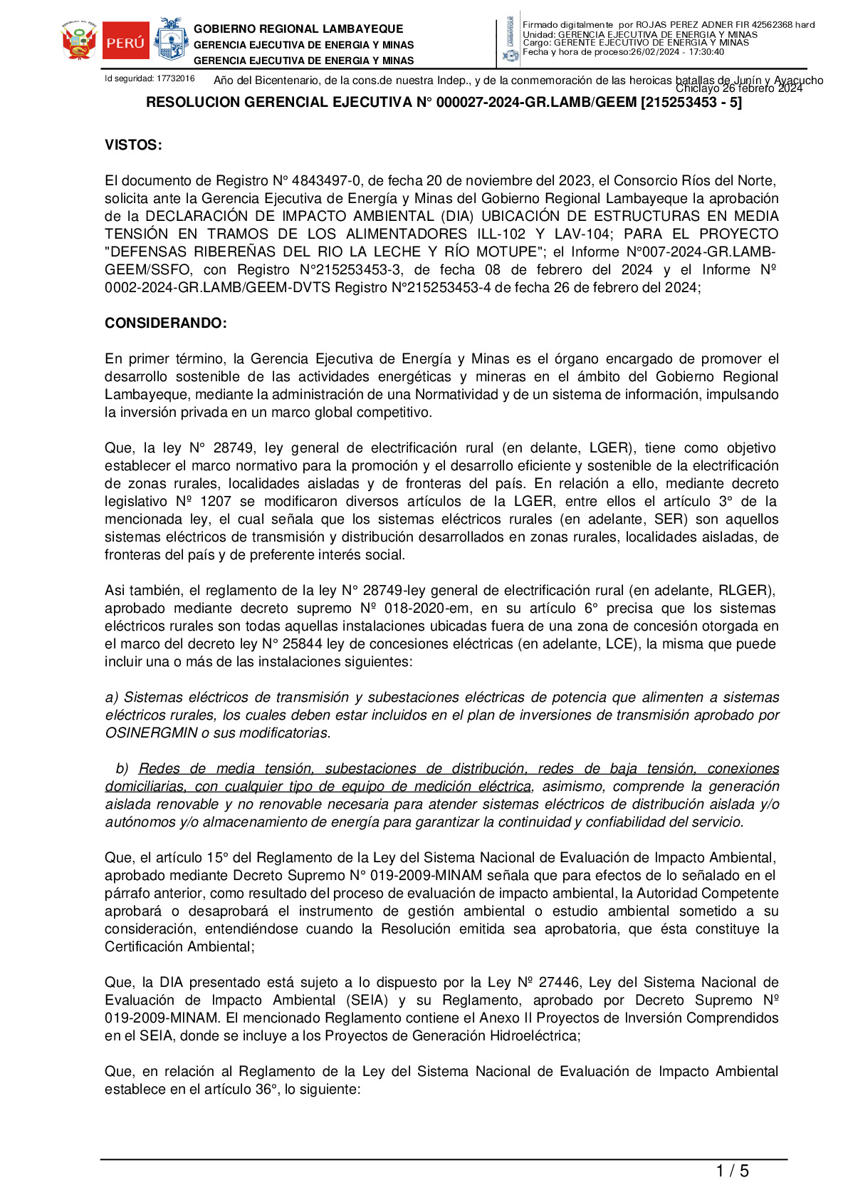 RESOLUCION GERENCIAL EJECUTIVA N° 000027-2024-GR.LAMB/GEEM [215253453 - 5]