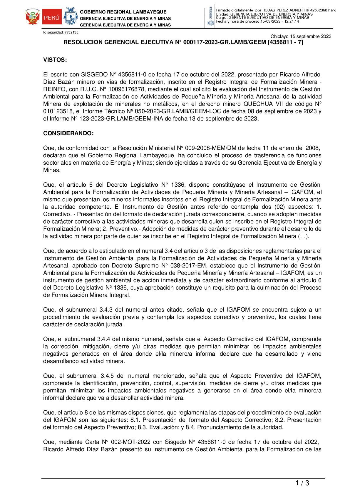RESOLUCION GERENCIAL EJECUTIVA N° 000117-2023-GR.LAMB/GEEM [4356811 - 7]