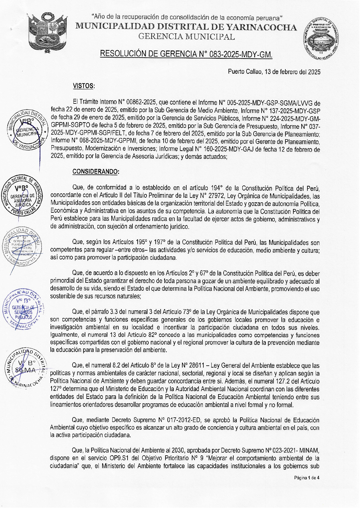 Mediante Resolución de Gerencia, se Aprueba el Plan de Trabajo 2025, del Programa Municipal de Educación, Cultura, y Ciudadanía Ambiental de la Municipalidad Distrital de Yarinacocha, como herramienta de gestión indispensable para la ejecución de las actividades de educación, cultura y ciudadana ambiental.