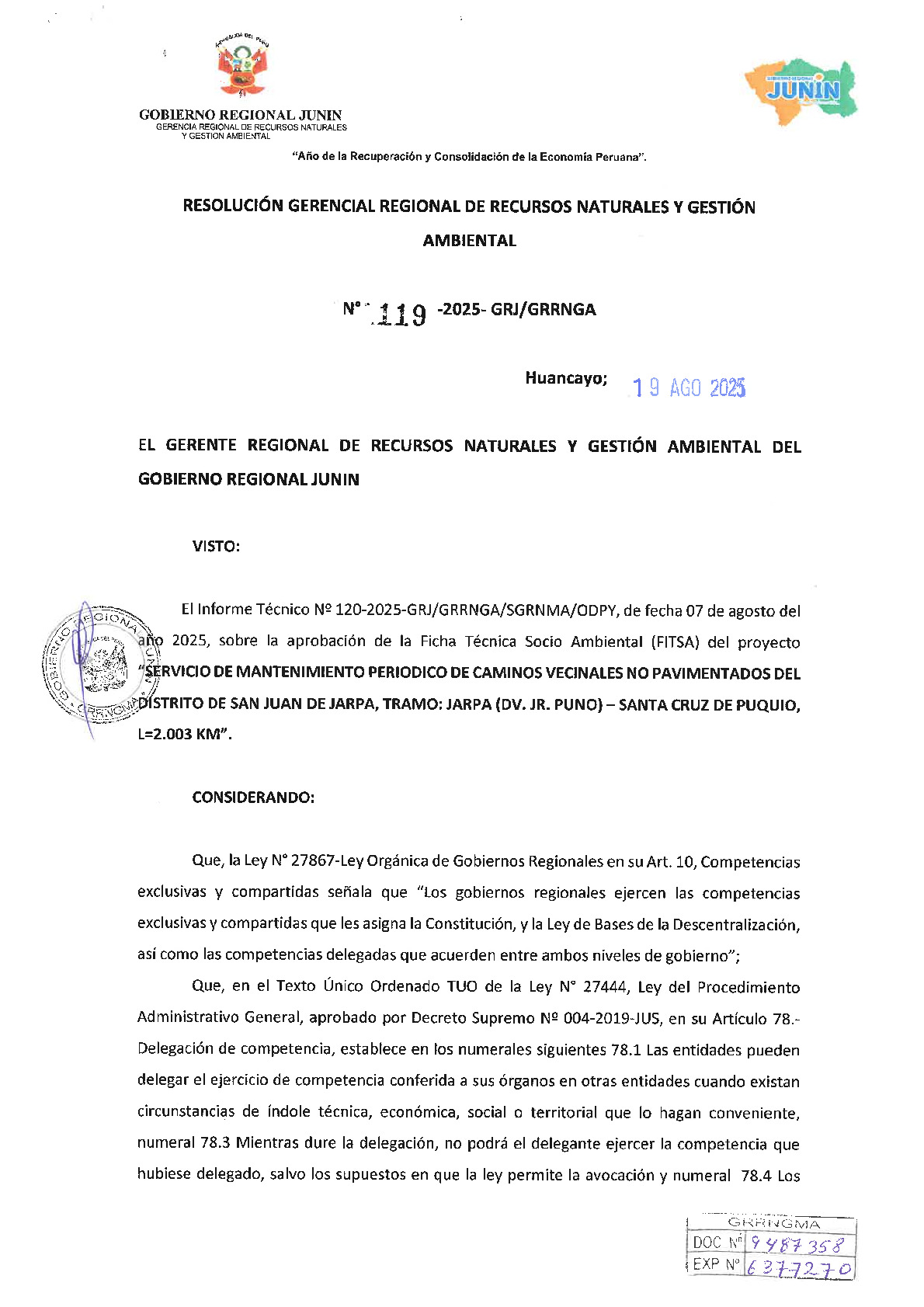 119-2025-GRJ/GRRNGA