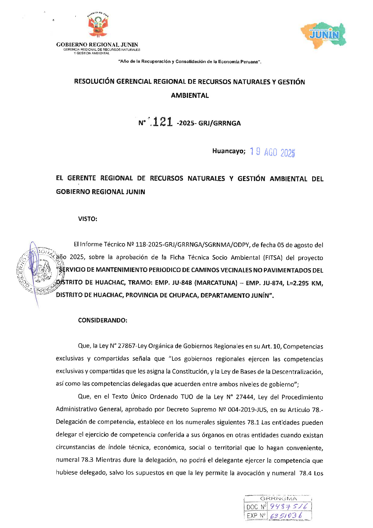 121-2025-GRJ/GRRNGA