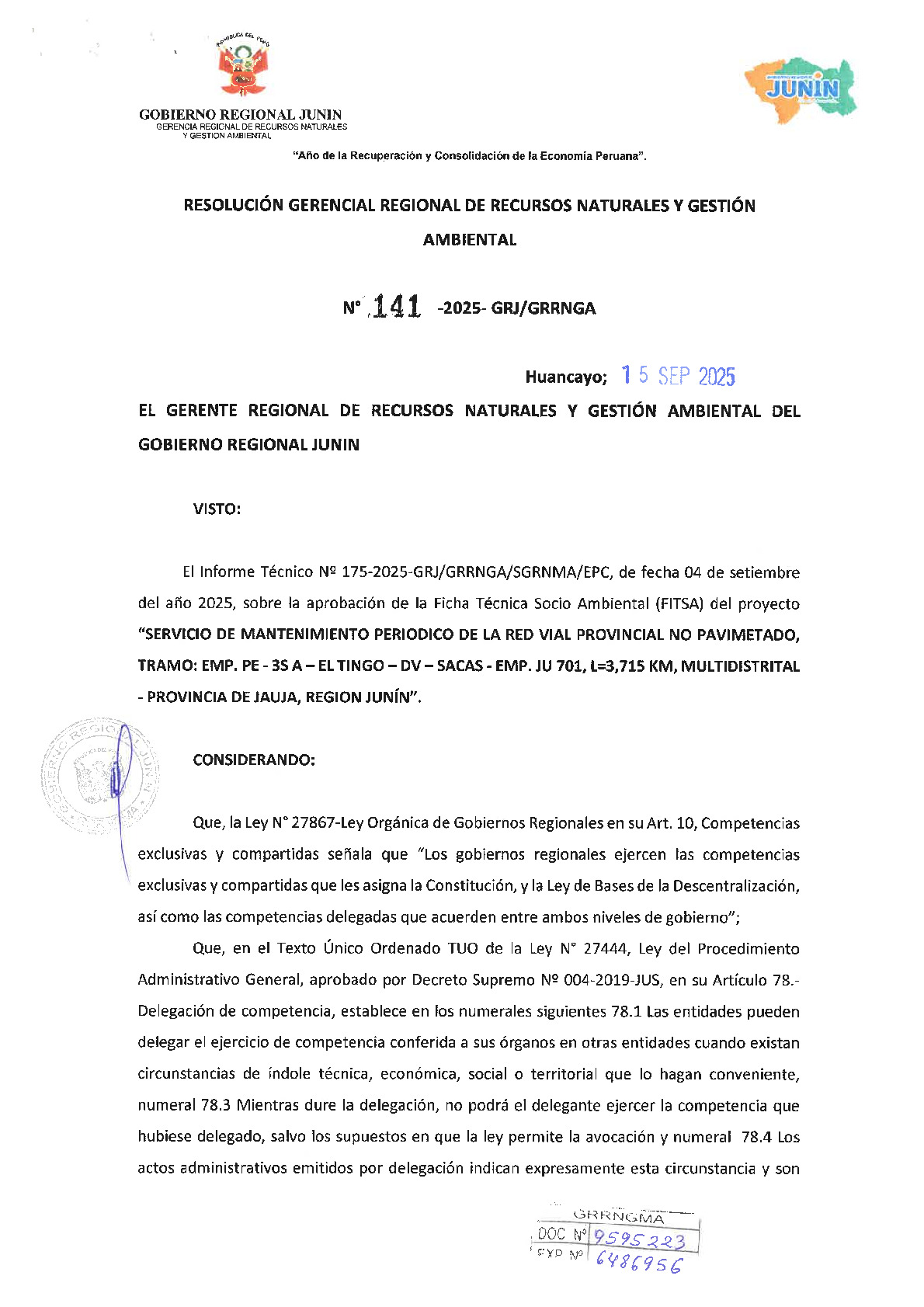 141-2025-GRJ/GRRNGA
