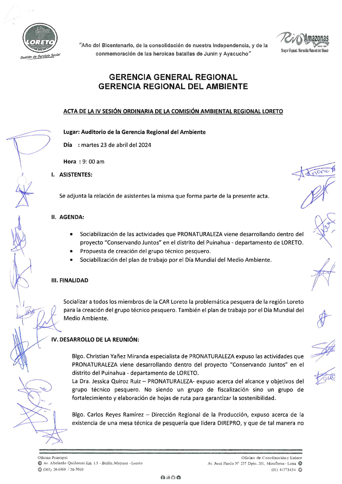 IV Sesion Ordinaria de la Comison Ambietal Regional de Loreto - 2024