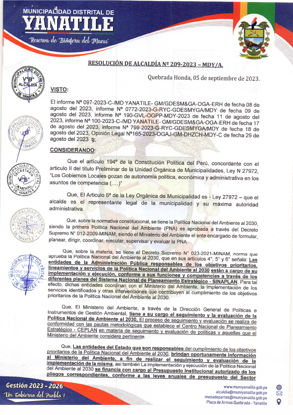La presente Resolución de Alcaldía aprueba el Plan de Trabajo 2023 del Programa Municipal de Educación, Cultura y Ciudadanía Ambiental de la Municipalidad Distrital de Yanatile (Cusco), con la finalidad de definir las actividades de educación, cultura y ciudadanía ambiental que se desarrollaran en la localidad durante el presente año.